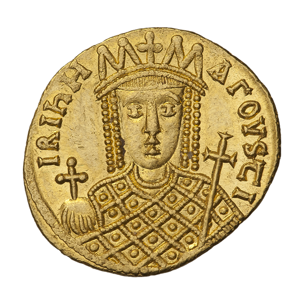 사란타피카니아라는 성을 가진 이리니는 레온 4세의 황후(775-780년)였으며 어린 콘스탄티노스 6세가 성장하는 동안 780-790년까지 섭정을 했다. 792-797년까지 공동 통치 황후였고 797년부터 802년까지 동로마 제국의 단독 통치자이자 첫 번째 여제를 지냈다. 정치적으로 저명한 사란타페코스 가문의 일원으로, 그녀는 768년 알 수 없는 이유로 레온 4세의 신부로 선택되었다. 남편이 우상 파괴자임에도 불구하고 그녀는 우상숭배자에 대한 동정심을 품고 있었다. 섭정 시절인 787년 제2차 니케아 공의회를 소집하여 성상 파괴주의를 이단으로 규정하고 제1차 성상 파괴 시대(730-787년)를 종식시켰다. 이리니의 아들 콘스탄티노스가 성숙해지면서 그는 어머니의 영향 아래서 벗어나기 시작했다. 790년대 초, 몇몇 반란이 그를 단독 통치자로 선언하려고 했다. 이러한 반란 중 하나는 성공했지만, 792년 이리니는 콘스탄티노스와 함께 모든 제국 권력에 다시 세워졌다. 797년 이리니는 자신의 지지자들이 아들의 눈을 도려내고 심한 불구로 만드는 음모를 꾸몄다. 그는 투옥되었고 아마 얼마 지나지 않아 죽었을 것이다. 그가 물러나자, 이리니는 자신이 유일한 통치자라고 선언했다. 이리니는 로마 제국의 여성 통치자라는 전례가 없는 지위를 얻었고, 이에 따라 교황 레오 3세는 800년 성탄절에 여성은 통치를 할 수 없고 로마 제국의 황좌는 사실상 공석이라는 이유를 대며 카롤루스 대제를 신성 로마 제국의 황제로 선포했다. 802년 반란이 일어나 전복되어 이리니는 레스보스 섬으로 유배되었으며 니케포로스 1세가 황위에 올랐다. 이리니는 1년도 채 되지 않아 유배 중에 사망했다.