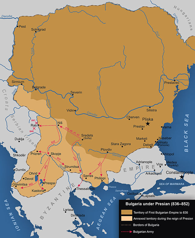 803-814년 불가리아 칸 크룸의 확장. 칸 크룸이 세르디카(소피아)를 점령하자 811년 니케포로스는 불가리아를 침공하여 크룸을 두 차례 격파하고 수도 플리스카를 약탈했다. 불가르군이 고갯길에서 매복해 철수하던 비잔틴군을 격파하였고 니케포로스는 전사했다.