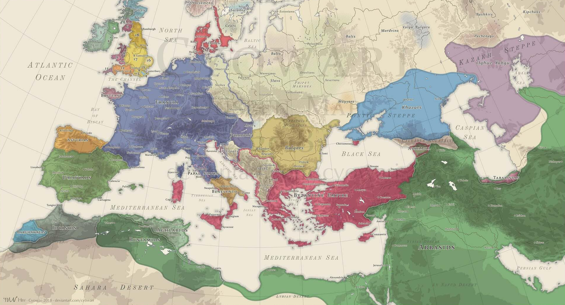 802년 비잔틴 제국. 셀레우키아 시데라 출신의 파트리키 니케포로스는 귀족들과 환관들의 도움으로 이리니를 몰아내고 황제로 즉위했다. 그는 발칸반도에 새로운 테마를 조직하고 국경을 강화했다. 군대 양성을 위한 제국의 수입을 늘리기 위해 엄격하게 세제를 통제했다.