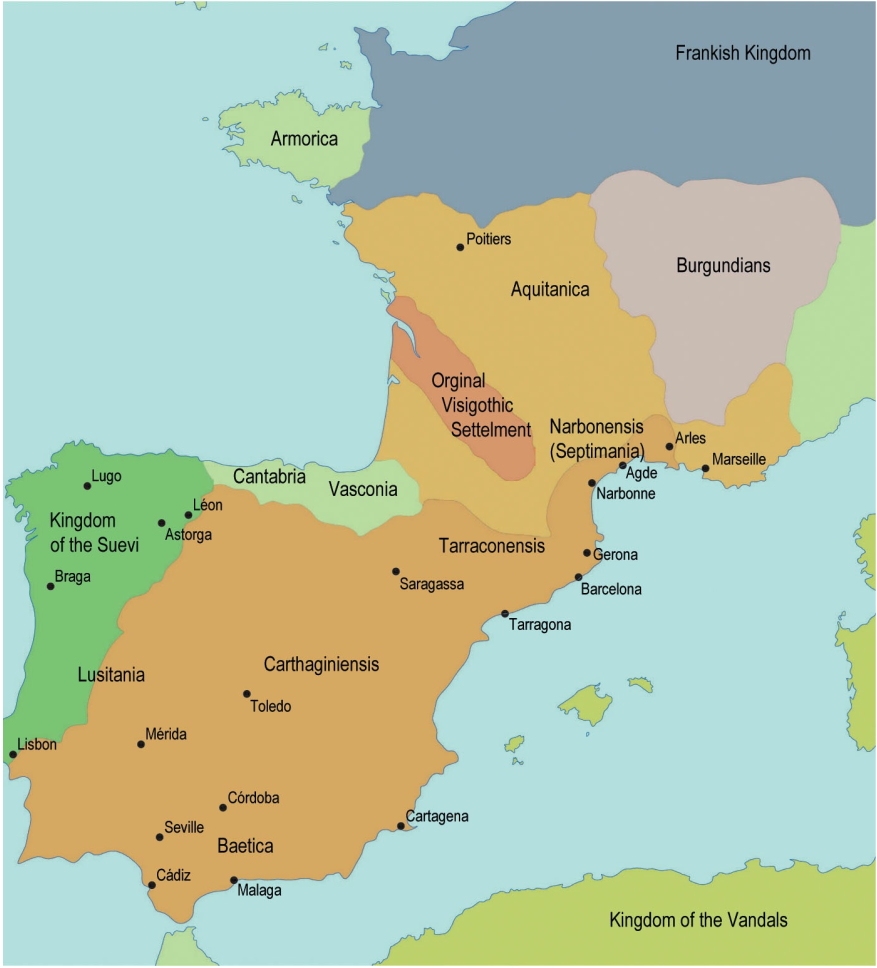 서유럽에서 5세기의 가장 중요한 역사적 발전은 이미 서로마 제국의 옛 속주를 흡수한 게르만 왕국들의 출현이었다. 확인 가능한 주요 집단은 갈리아 남서부와 스페인을 지배했던 서고트족(비시고트족), 론 계곡 상류의 부르군트족, 갈리아 북부와 중부에서 부상한 살리 프랑크족, 그리고 5세기 말에 이탈리아를 지배하기 전까지 판노니아에 근거지를 둔 동고트족(오스트로고트족)이었다.