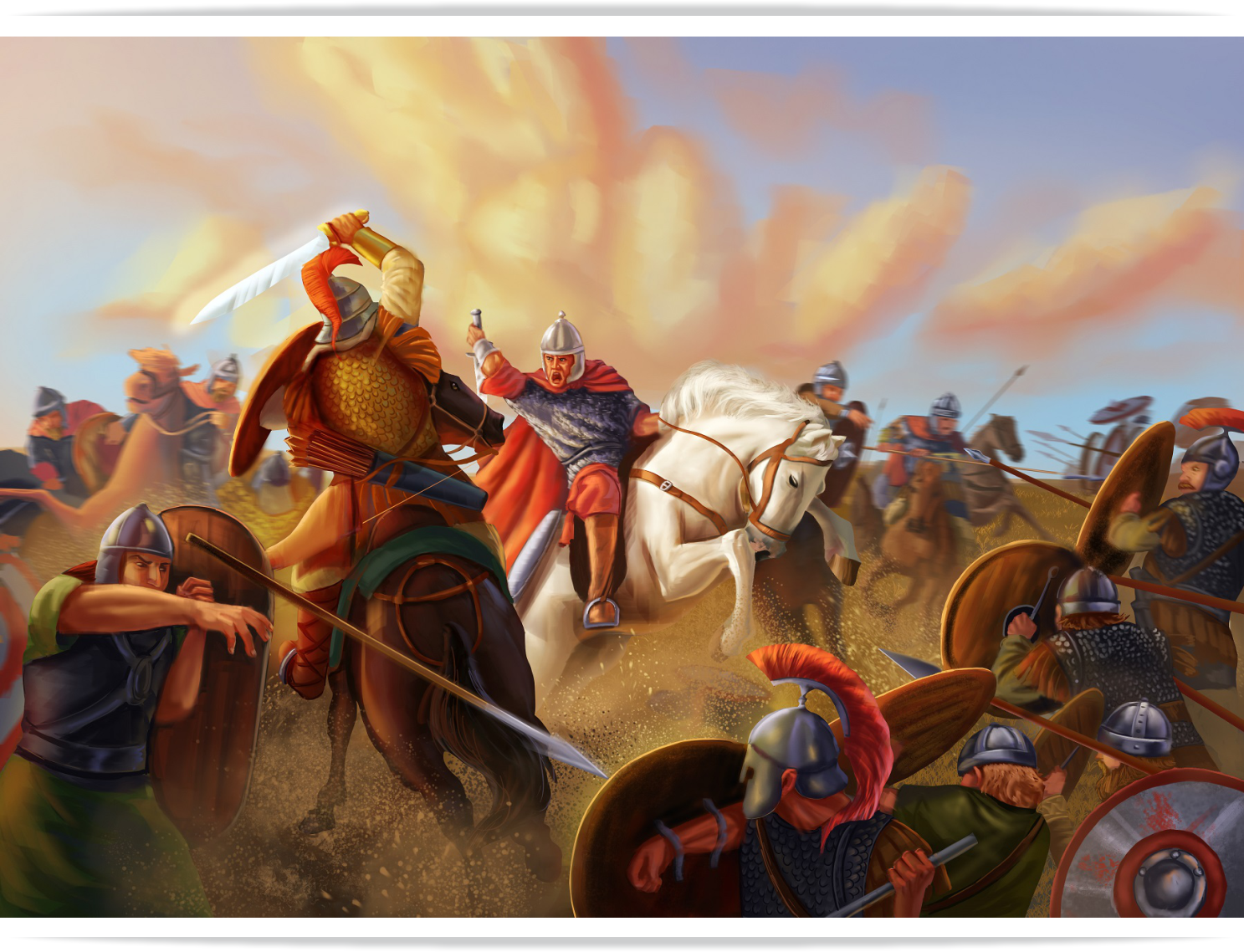 로마 이후 유럽에서 '야만인'과 로마 무기 사이의 유사점은 수세기 동안 국경을 넘어 제국의 막대한 문화적, 경제적 영향의 직접적인 결과뿐만 아니라, 로마인과 함께/로마인을 위해 싸웠던 '야만인'에게 공급한 지역 파브리카이(병기고)에서 제조한 어마어마한 양의 무기와 갑옷 때문이다. 사실, 후기 로마군이 사용한 무기는 카롤루스 마그누스(재위 768-814년) 통치 시대까지 그리고 치세 동안 전사들의 기본적인 무기로 남아있었다.