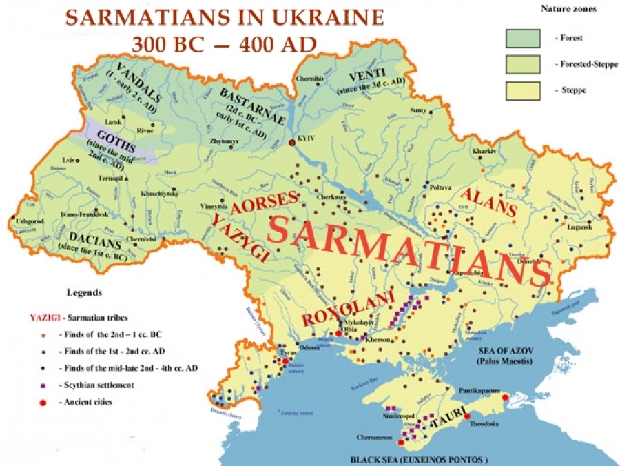 사르마티아인은 안타이(슬라브-사르마티아) 부족 연합 내에서 슬라브족과 교류하면서 우크라이나 민족을 형성하는데 중요한 역할을 했다.