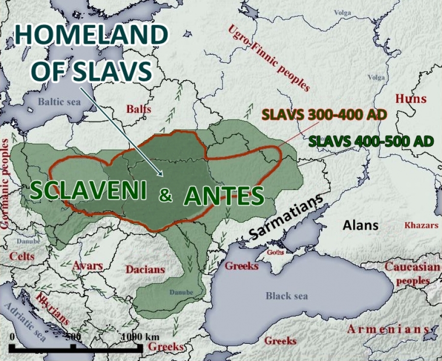 현재 대부분의 학자들은 슬라브족의 고향이 카르파티아 산맥 북부와 볼린뿐 아니라 폴리시아와 드니프로 강 오른쪽 기슭 지역이라고 믿고 있다. 순전한 슬라브어 강의 이름은 오늘날 우크라이나의 이 지역에 집중되어 있다.