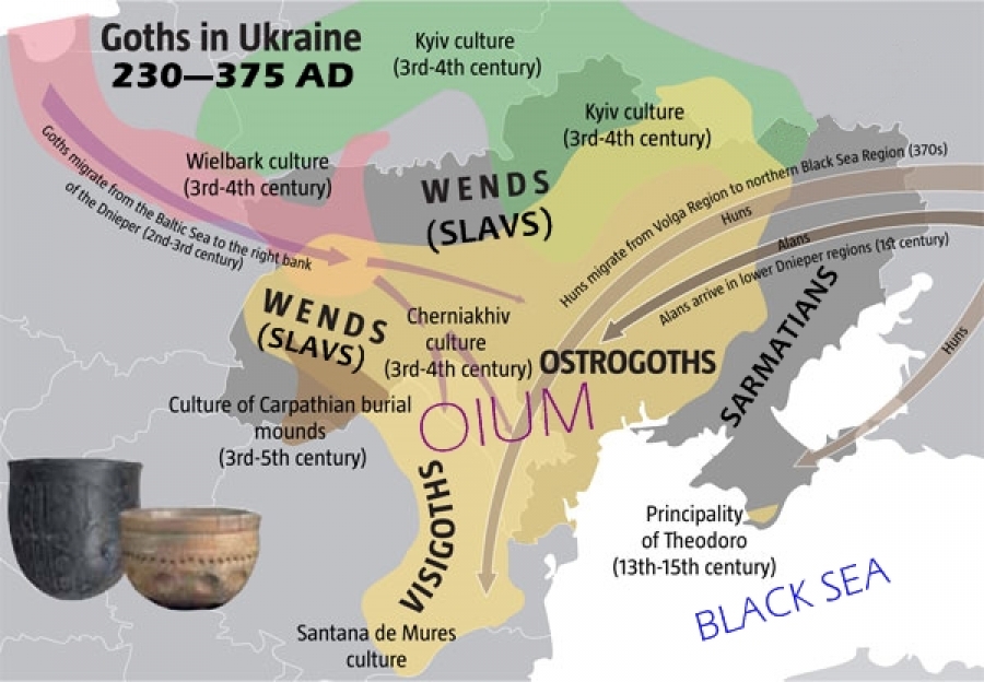 4세기 오늘날의 우크라이나 영토에 있는 슬라브족과 사르마티아인 모두 고트 왕 에르마나리쿠스(350-375년)에게 조공을 바쳐야 했다.