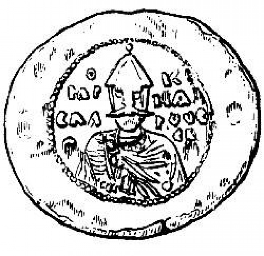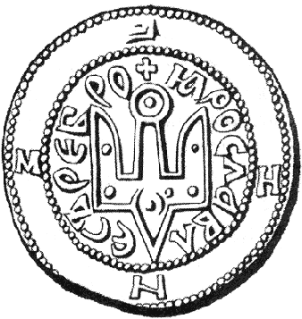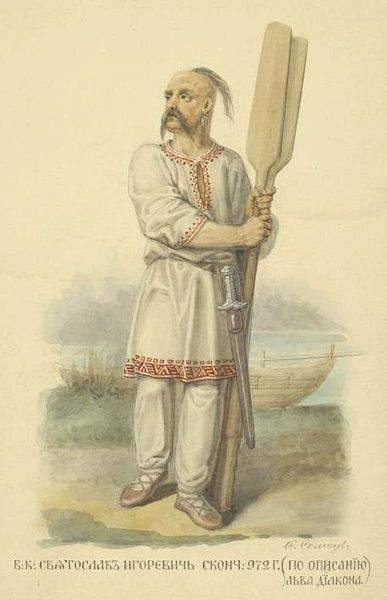 용맹공 스뱌토슬라프, 그의 동시대인 레온 디아코노스(10세기)의 묘사에 따른 19세기 복원 그림