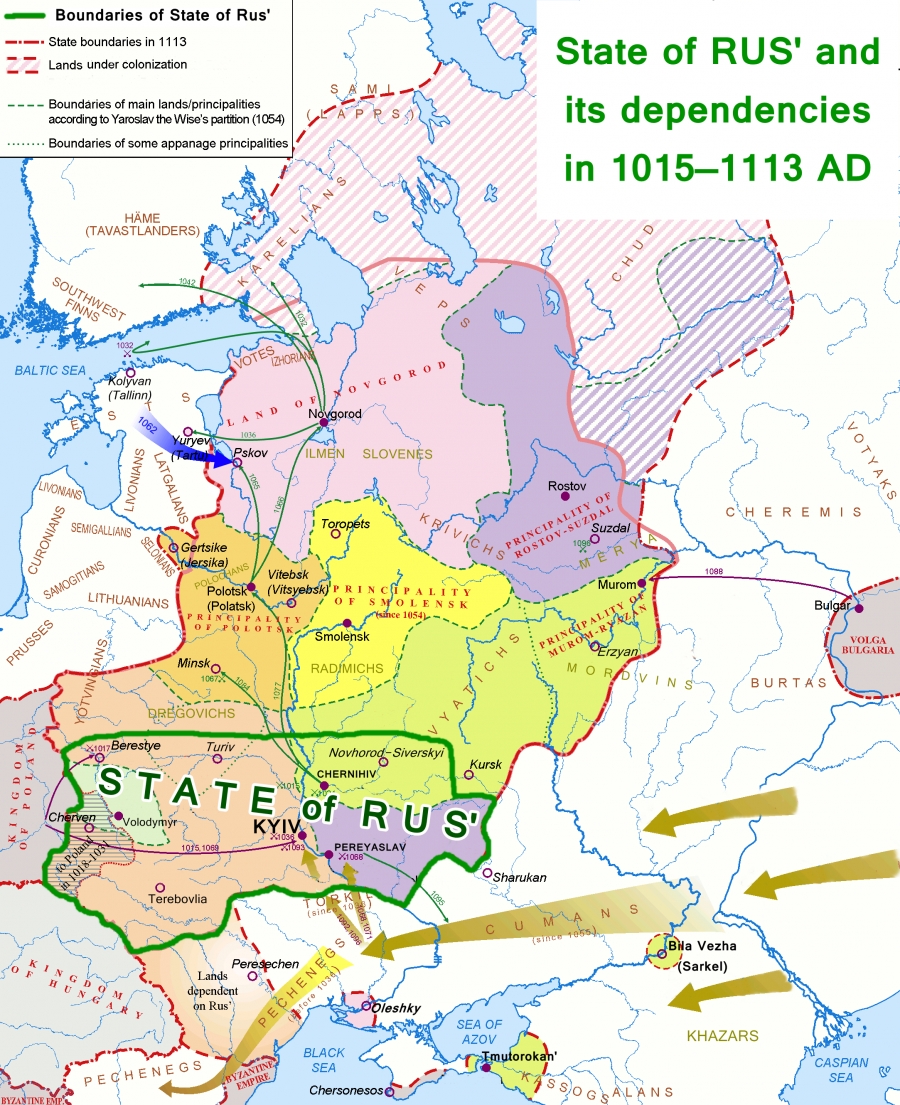 당시 루스의 역사는 주로 쿠만족과의 전쟁과 모노마호비치와 올고비치 왕조들 간의 내부 투쟁, 그리고 체르니히우, 할리치, 볼린의 볼로디미르 등 다양한 공국들의 중심지에 대한 점차적으로 증가하는 지배로 구성되어 있다.