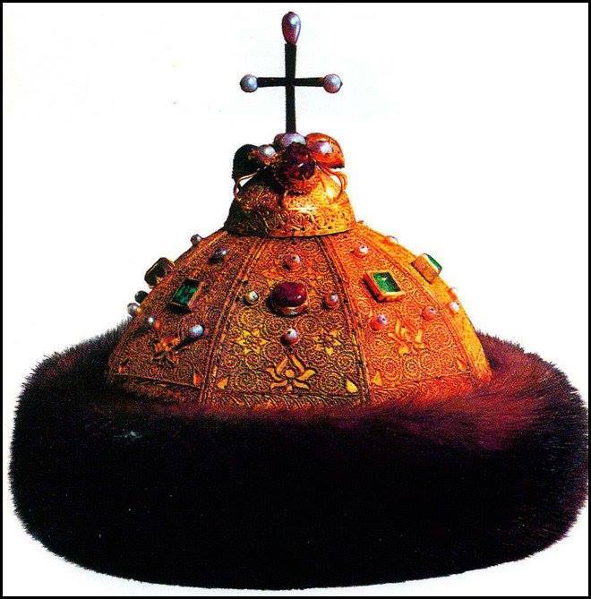 크렘린의 거짓된 "모노마흐의 관". 사실, 14세기 초 금장 칸국의 우즈베크 칸이 모스크바의 군주에게 칸의 권력을 나타내는 표시로 준 몽골식 모자(관)이다.