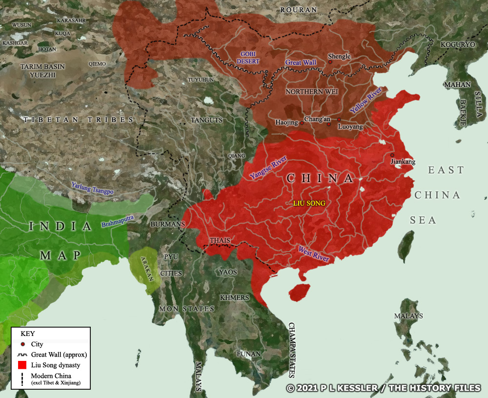 4세기 초, 중국은 다시 한번 분열되었고, 북쪽은 '다섯 야만족의 열여섯 왕국'으로 분할되었다.