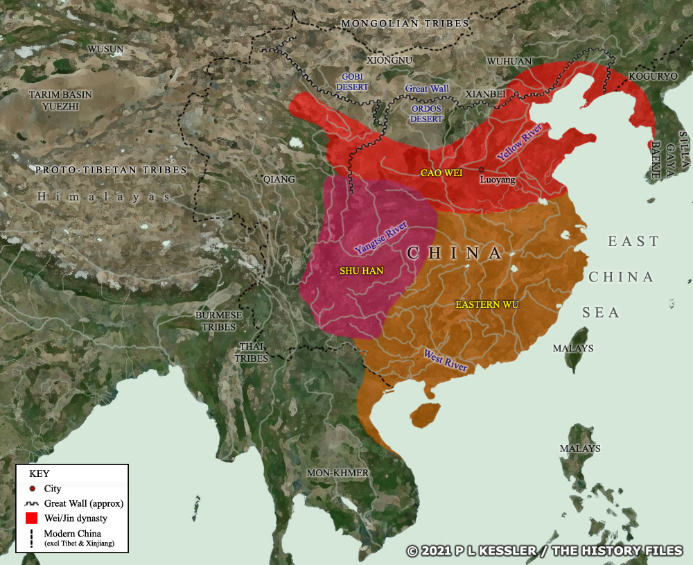 3세기의 30년까지 중국의 국경은 후한(後漢)이 멸망하는 동안 다소 축소되었지만, 특히 한반도와 북서쪽의 야만족 영토에서는 여전히 상당한 영향력을 행사하고 있었다.