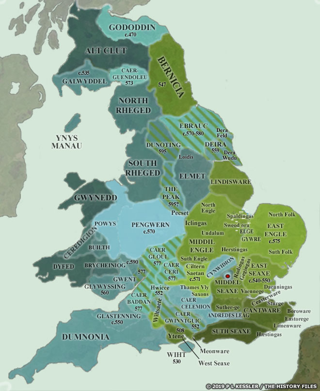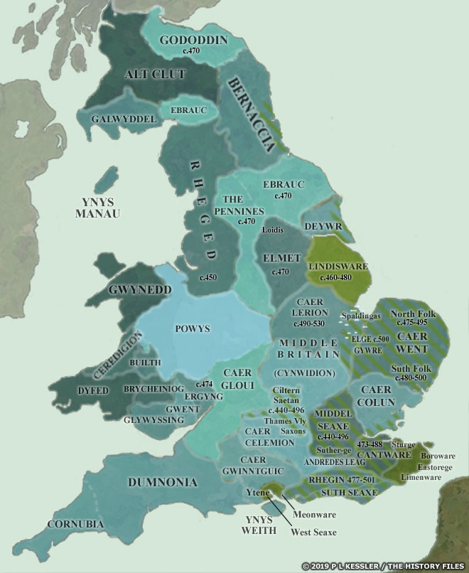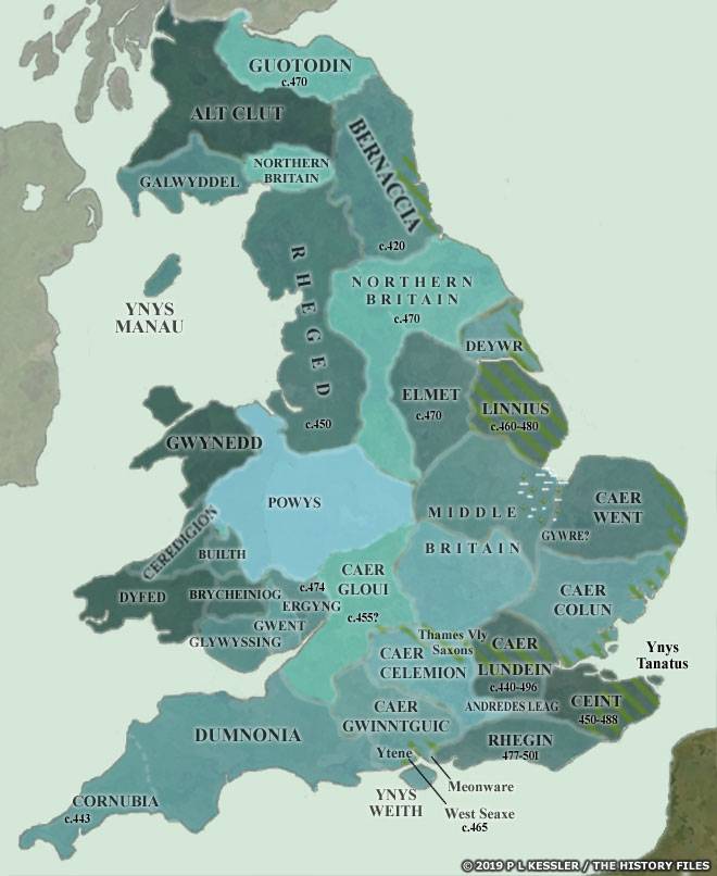 앵글로색슨족의 정복이 시작된 450년으로부터 25년이 지났지만, 북쪽은 손상되지 않았고 여전히 상대적으로 강력했다. 용병(라이티)으로 고용된 앵글족은 동부 해안선의 방어를 계속해서 도왔다.