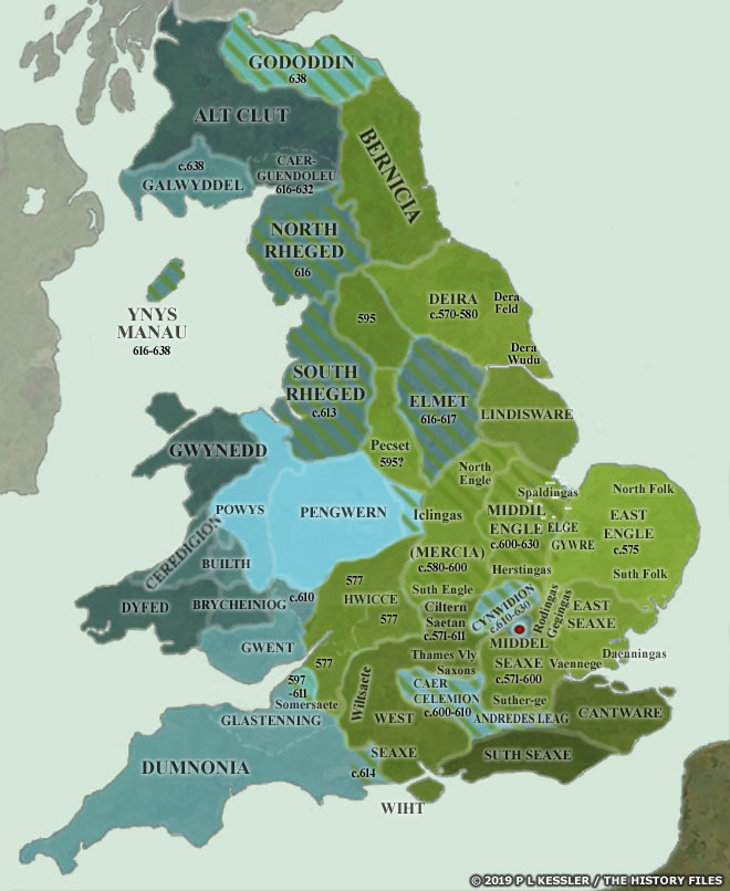 브리튼의 킨위디온은 미들랜즈에서 대규모로 침입한 미들랜즈 엥글족에 의해 영토가 많이 줄어들었음에도 불구하고 계속 버텼다.