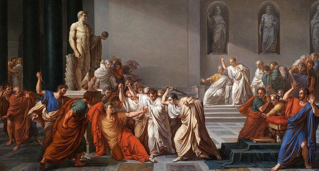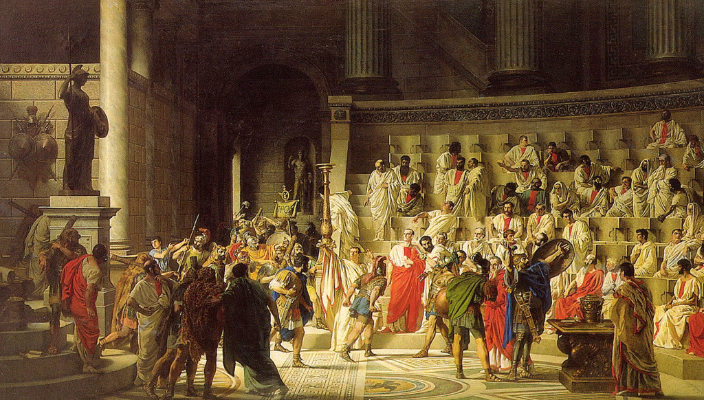 폼페이우스, 마르쿠스 크라수스, 율리우스 카이사르가 제1차 삼두정치를 구성했다. 율리우스 카이사르는 그의 지능, 웅변 능력, 군대에 대한 영향력 덕분에 두각을 나타냈다. 일부 원로원 의원들은 그가 자신을 독재자로 선언할까 두려워했다. 그리하여 그들은 원로원에서 그를 암살했다.