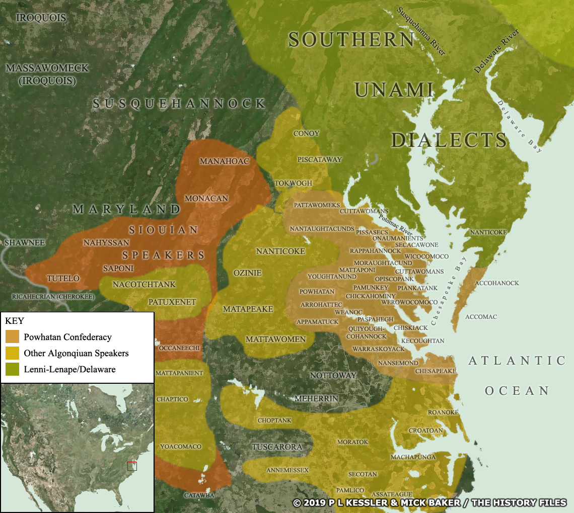 포우하탄 연합은 16세기 말에 형성되었고, 두 번째 최고 추장 밑에서 오늘날에는 델라웨어주(반도 동쪽)와 메릴랜드주(반도 서쪽)로 나뉘어 있는 영토를 포함하여 급속도록 확장되었다.
