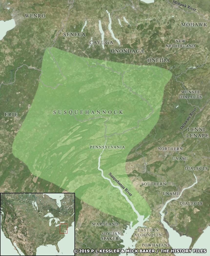 서스퀘해녹의 영토는 강을 중심으로 하여 이름이 붙여졌지만 동쪽으로 멀리 이리 호수를 향해 뻗어 있었으며, 그곳에서 그들은 대체로 평화로운 이리 사람들과 북쪽의 확실히 평화롭지 않은 이로쿼이족을 접했다.