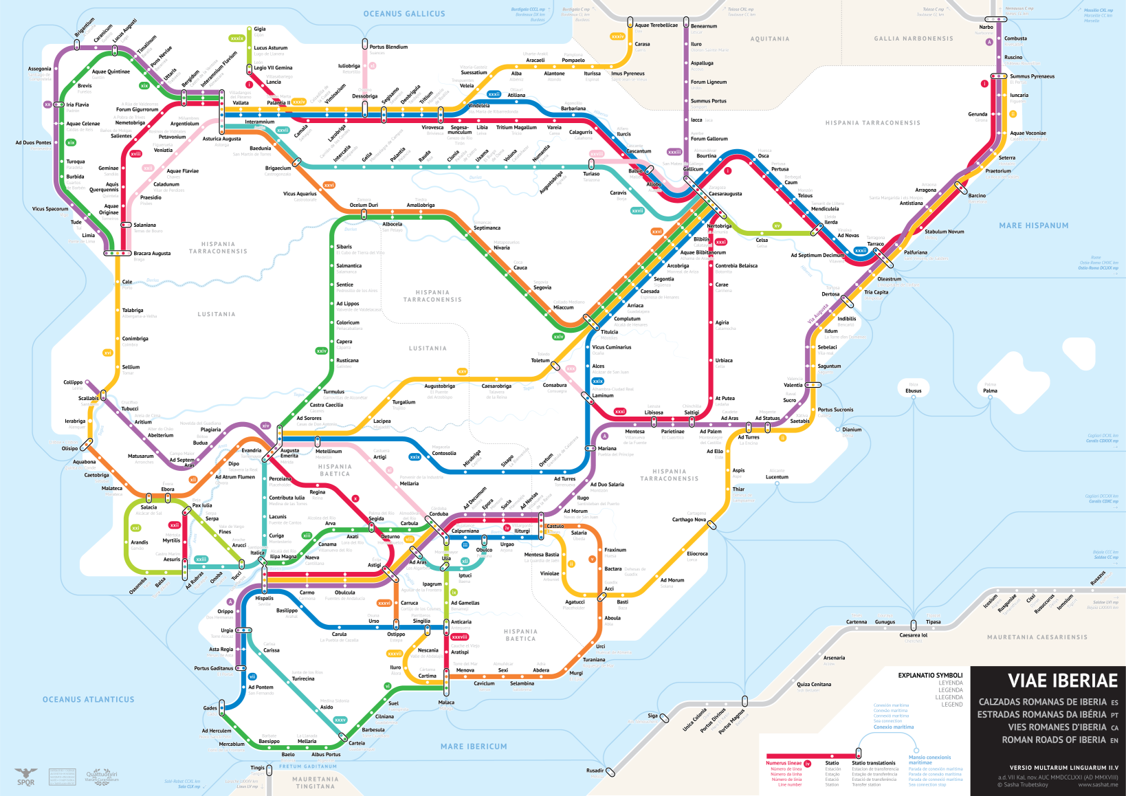 갈리아에서만 21,000 km(13,000 마일)의 고속도로가 개선되었고, 브리튼에서는 최소 4,000 km(2,500 마일)의 고속도로가 개선되었다. 이베리아의 도로 체계는 총 약 10,500 km(6,500 마일)였다.