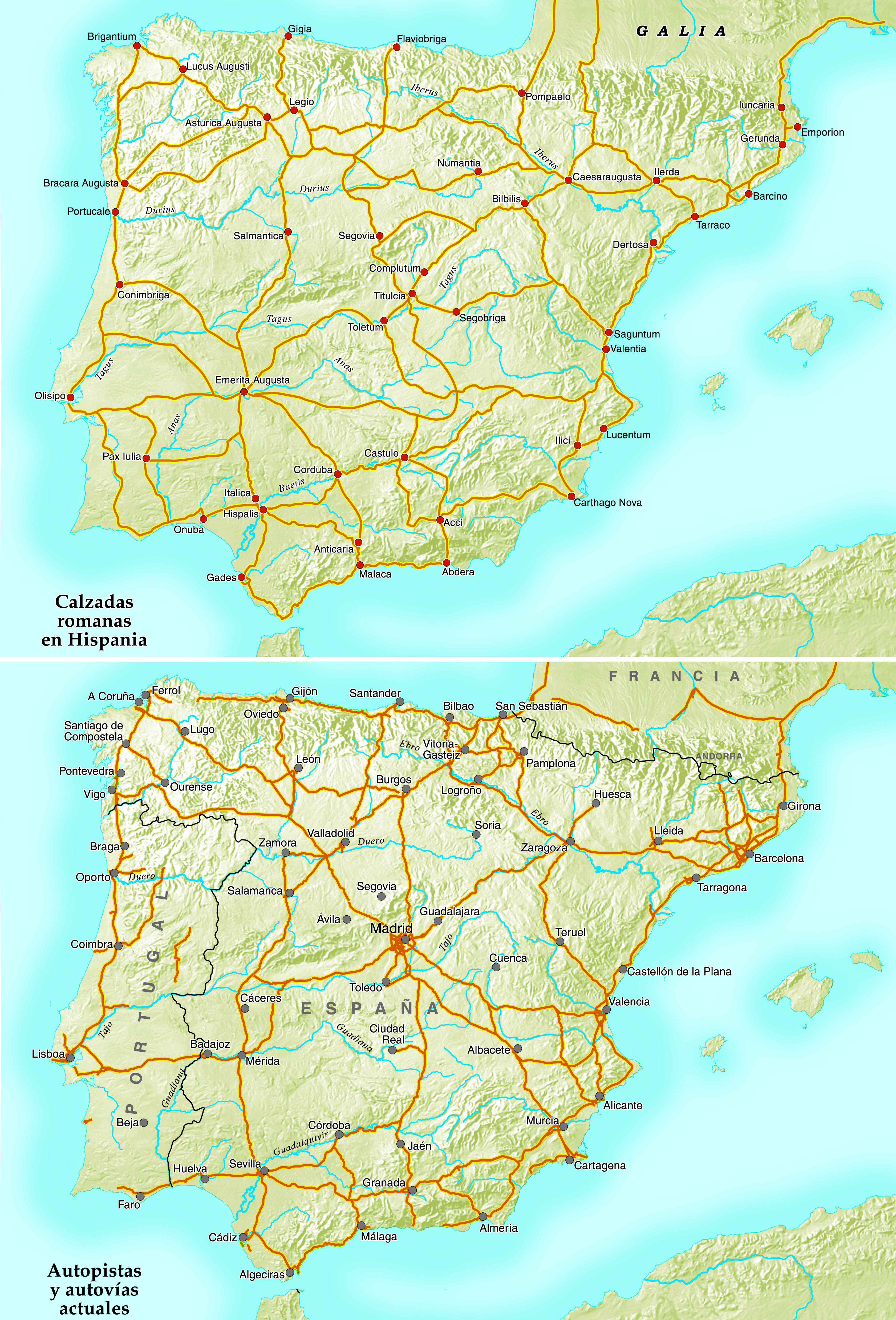 수많은 로마 도로가 수천 년 동안 남아 있었고, 일부 현대 도로는 로마 제국의 일부 고속도로를 포함한다.