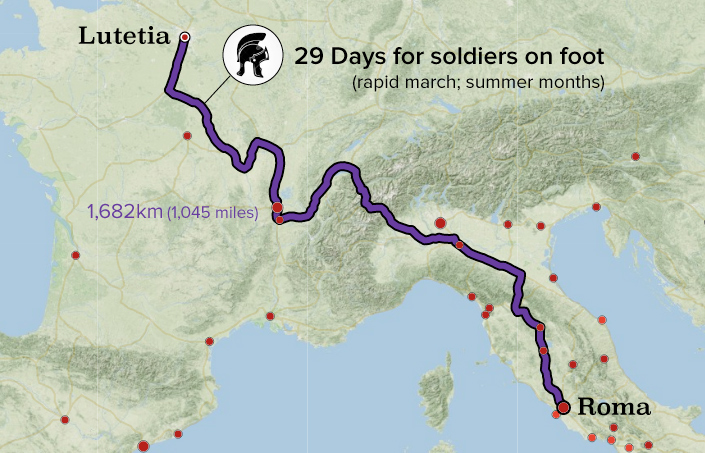 로마제국은 워낙 규모가 커서 도로망이 잘 발달되어 있었음에도 제국의 가장 외딴곳까지 가는 여정은 35일이 걸렸다.
