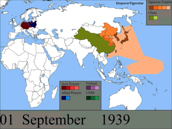 제2차 세계대전은 3개 대륙에서 주요 전투와 역사상 가장 큰 해전이 있었던 세계 역사상 가장 큰 분쟁이다. 유튜브 유저 엠퍼러 타이거스타가 만든 이 놀랍도록 상세한 동영상 지도는 분쟁에 대한 세계적인 시각을 제공한다. 지도는 태평양에서 일본의 정복, 유럽에서 독일의 승리, 그리고 잃어버린 영토를 탈환하기 위한 느리지만 냉철한 연합군의 노력을 보여준다. 여기에서 볼 수 있는 유튜브 동영상 지도는 전쟁이 일어난 날짜가 나타나 있어 더욱 세밀하다.