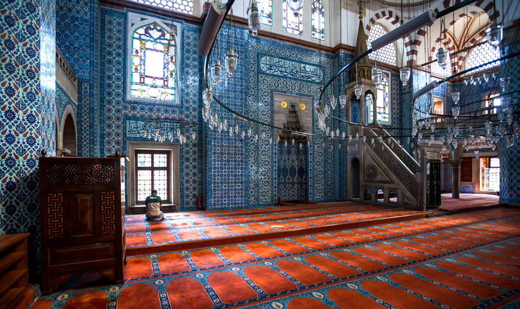 뤼스템 파샤 모스크는 구 도시에서 가장 번화한 장소인 에미뇌뉘에 위치한 숨겨진 보석이다. 관광객들이 붐비는 바자르 한 가운데 위치한 모스크의 입구를 찾기란 쉽지 않다.