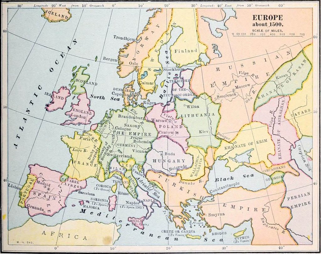 헝가리 왕 마차시 1세(마티아스 코르니부스)의 치세 끝무렵의 유럽.