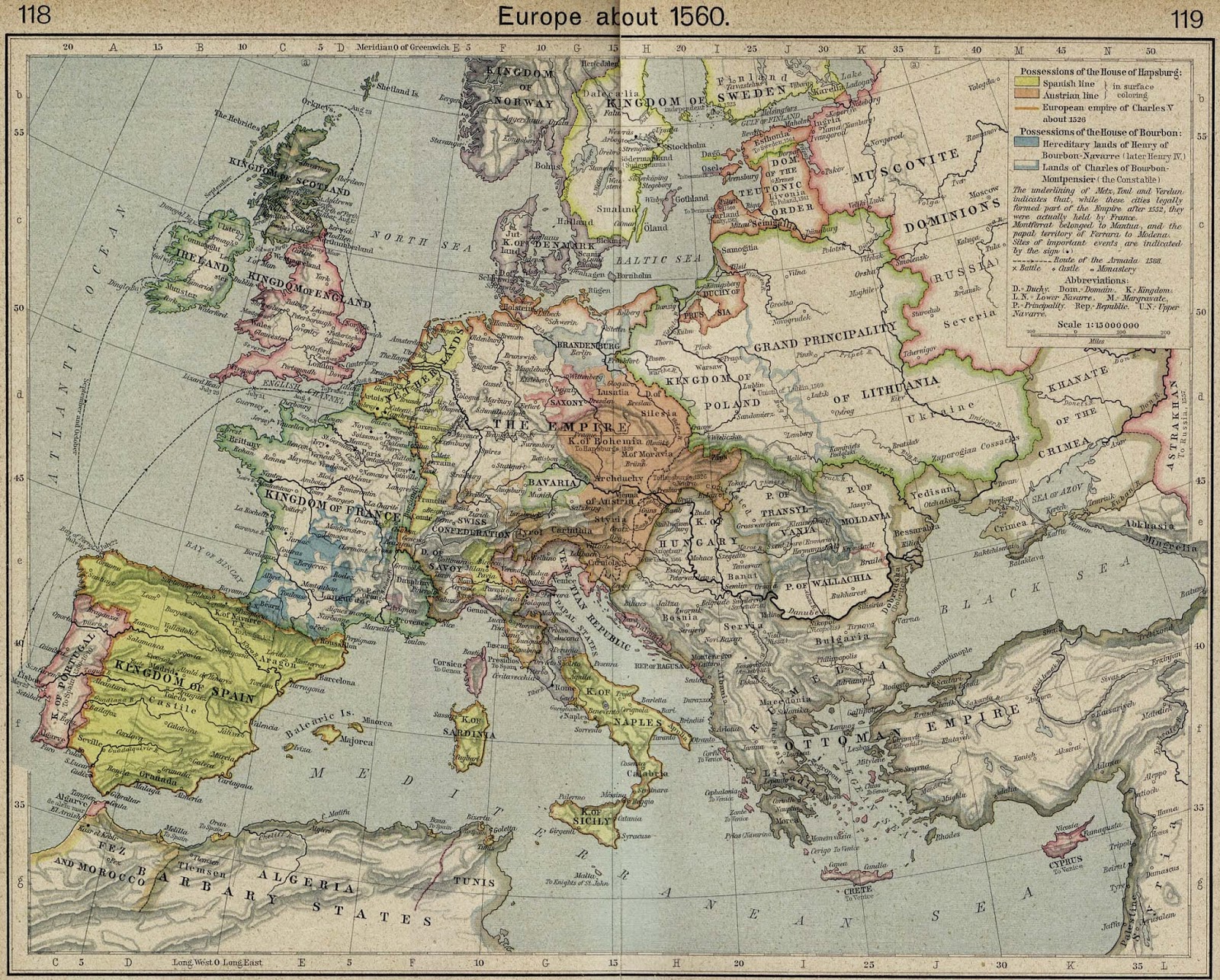 엘리자베스 1세가 통치를 시작하여 개신교 교회를 재건했고 프랑스는 대륙에서 지배적인 세력이 되었다. 1560년대에 네덜란드는 스페인의 펠리페 2세에 대항하여 반란을 일으켰다. 1560년과 1715년 사이에, 유럽에 전쟁이 없었던 시기는 단지 30년뿐이었다.