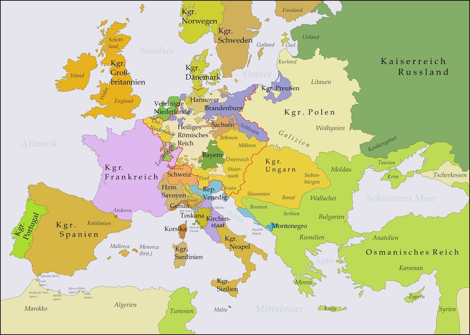 1714년 위트레흐트 조약 이후 (스페인 왕위 계승 전쟁 종식)