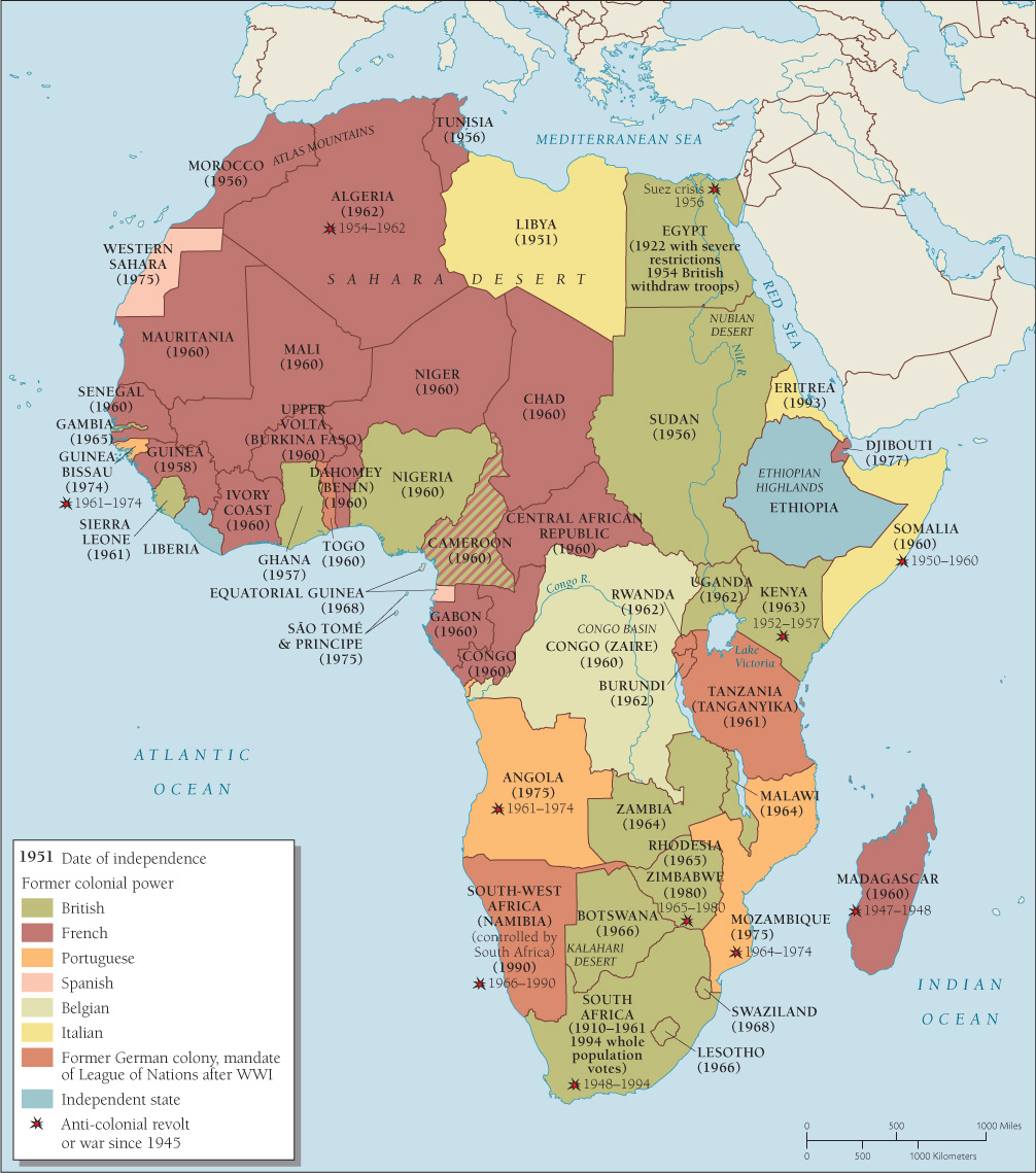 전후 부채에 시달린 유럽 국가들은 더 이상 아프리카 식민지를 통제하는 데 필요한 자원을 제공할 수 없었다. 아프리카 민족주의자들은 매우 빠르고 최소한의 사망률로 탈식민지화를 협상할 수 있었다. 그러나 일부 지역에서는 독립을 위한 투쟁으로 인해 상당한 사망자가 발생하기도 했다. 일부 국가들은 자유를 위해 계속 싸우고 있다.