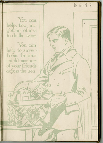 제1차 세계대전은 끔찍했지만 그 결과 또한 추악하고 잊지 말아야 할 것이었다. 모든 전투가 끝난 후, 유럽을 관통한 거대한 군대의 결과로, 거의 모든 주민들을 위협하는 굶주림이 있었다. 1918년, 미 식량 관리국은 미국의 아이들에게 이 상황에 대해 말하고 도움을 주도록 동기를 부여하는 책을 만들었다. 책의 제목은 "음식 절약과 나눔 : 미국의 청소년이 바다 건너 연합국 전우들을 기근으로부터 구하는 데 도움이 될 수 있는 방법"이었다.