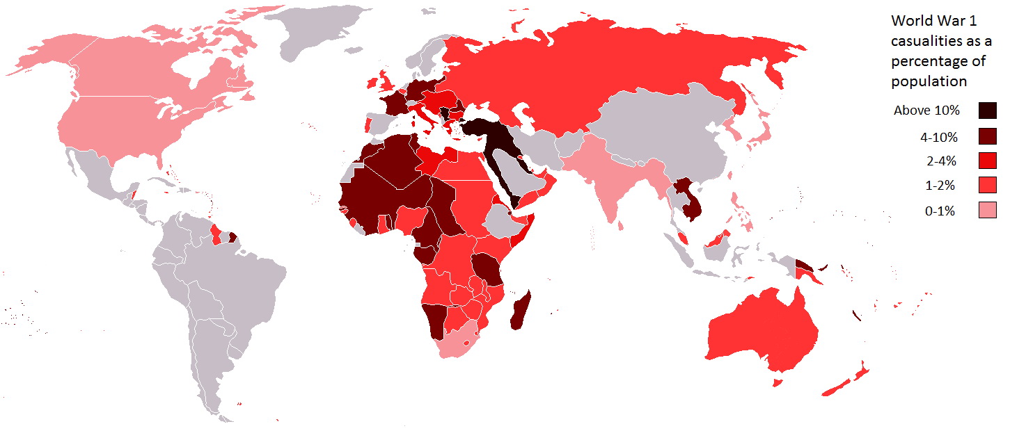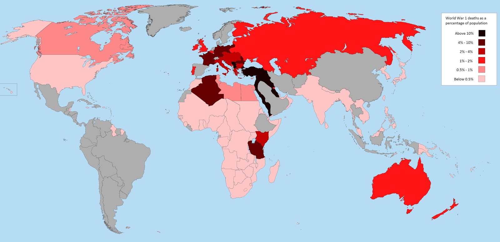 전 세계 국가별 제1차 세계대전 사망자 비율