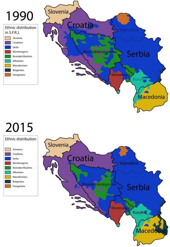 아래 애니메이션 지도는 유고슬라비아의 해체 과정을 자세히 보여준다.
