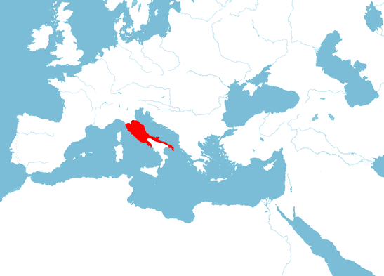 전승에 따르면, 로마는 BC 753년 로물루스에 의해 세워졌으며, 트로이 멸망으로부터 살아남은 아이네이아스의 후손으로 추정된다. 도시는 510년경 에트루리아 통치자들을 몰아내고 공화국이 되었을 때 전설에서 벗어나 역사 속에 명확한 모습을 드러냈다. 규모와 힘이 빠르게 성장한 도시는 이탈리아 중부의 주요 도시이자 전시(戰時) 라틴도시 연맹의 최고 지휘관이 되었다. 340년에 라틴도시들이 반란을 일으켰지만, 로마는 그들을 물리쳤고 338년에 라틴도시들은 로마의 직접 통치하에 놓이게 되었다. 초기 로마가 정복한 이 지역은 위의 지도에서 빨간색으로 표시되어 있다. 빨간색 점묘로 된 지역은 카푸아로, 로마에 충성을 맹세한 독립적인 지역이다. 이러한 규칙은 아래의 모든 지도에 적용된다.
