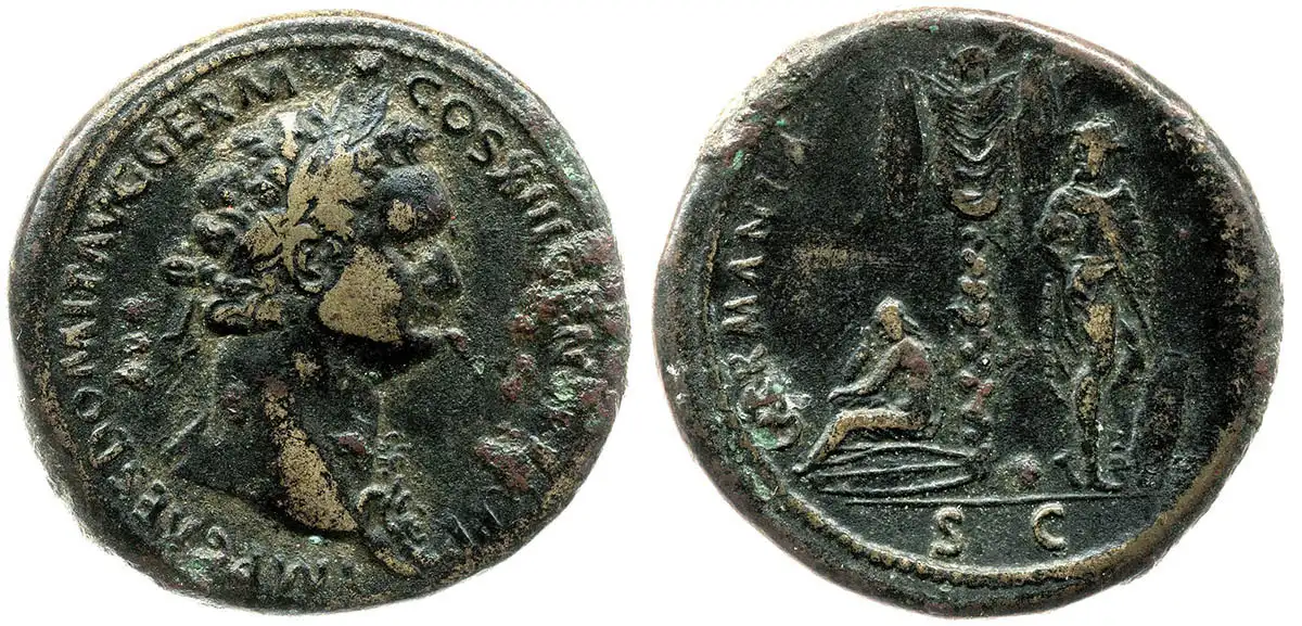 83년, 도미티아누스 황제는 검은 숲(슈바르츠발트) 지역으로 군사 원정을 이끌었다. 그의 캠페인에 대해서는 알려진 바가 거의 없는데, 이는 큰 영향을 미치지 않은 소규모 사건으로 보인다. 그러나, 우리는 추가적인 영토를 차지하지 않았고, 로마의 경계는 라인 강 서안에 남아 있었다는 것을 알고 있다. 따라서 도미티아누스의 원정은 전통적인 정복이 아니었다. 그러나 황제는 이 날을 기념하기로 결정했다. 로마 주화에는 글자 새김이 GERMANIA CAPTA(점령된 게르마니아)라고 새겨져 있다. 글과 이미지(포로 옆에 있는 트로파이움)의 선택은 도미티아누스의 아버지 베스파시아누스와 자신의 형제 티투스가 훨씬 더 중요하고 영향력 있는 유대 전쟁에서의 승리를 기념하기 위해 발행한 주화를 반영했다.