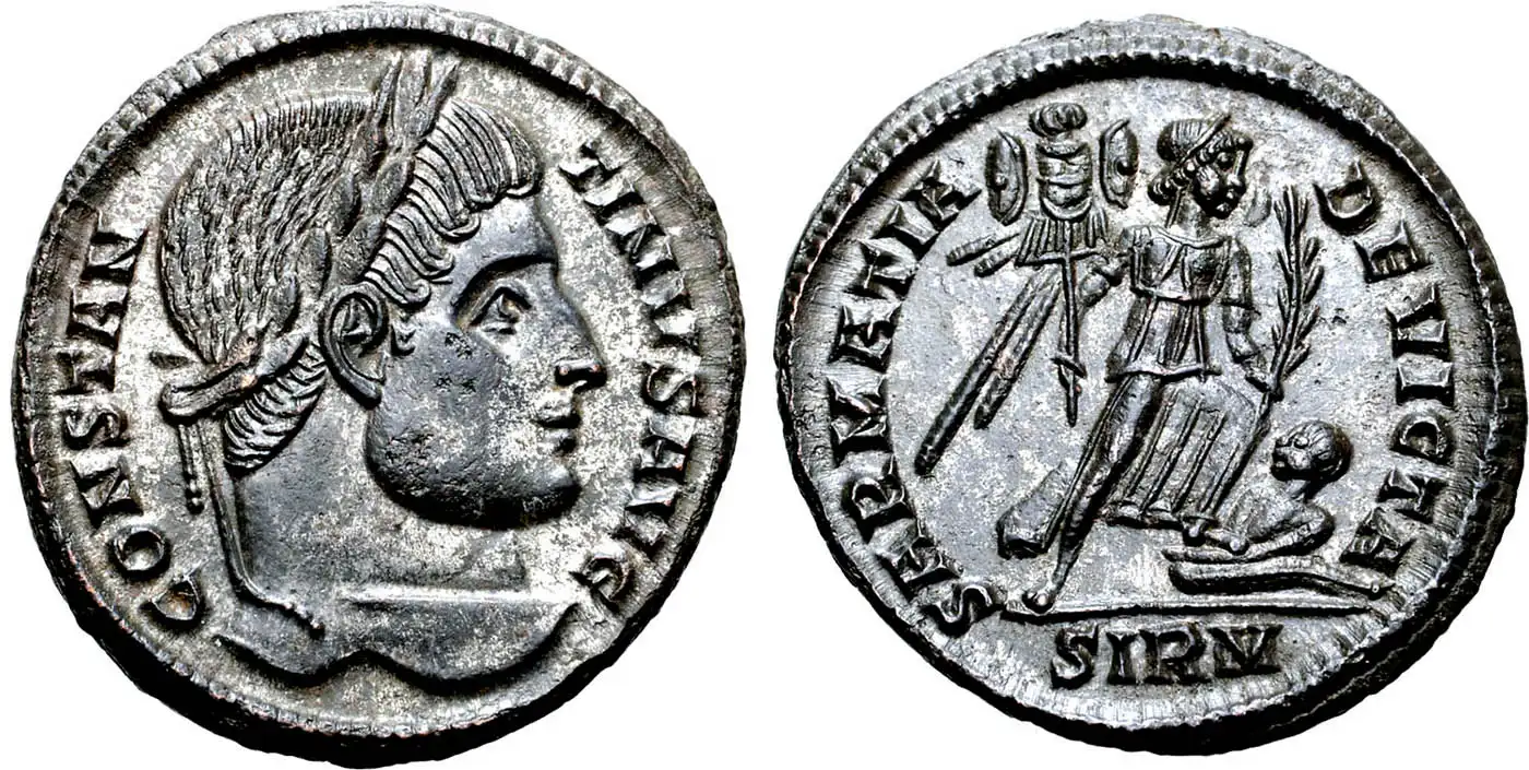 323년에 발행된 로마 주화는 아마도 서방 제국에서 실제로 정복한 것을 기념하는 마지막 주화일 것이다. 글자 새김 SARMATIA DEVICTA(정복된 사르마티아)라고 새겨진 청동 주화는 콘스탄티누스 대제가 사르마티아인에게 승리를 거두고 다뉴브 강 건너편의 영토를 병합한 것을 축하한다. 글과 함께 그려진 이미지는 로마의 승리 도상학에서 선택한 전통적인 모티브로, 무릎 꿇은 야만인을 짓밟는 승리의 의인화이다. 그러나 콘스탄티누스가 위대한 승리를 거두는 동안, 새로 차지한 영토는 곧 버려졌다. 개방된 스텝은 기마 전사들을 방어하기에는 너무 어려웠고, 로마의 제한된 인력은 값비싼 내전을 포함하여 다른 곳에서 동원되어야 했다.