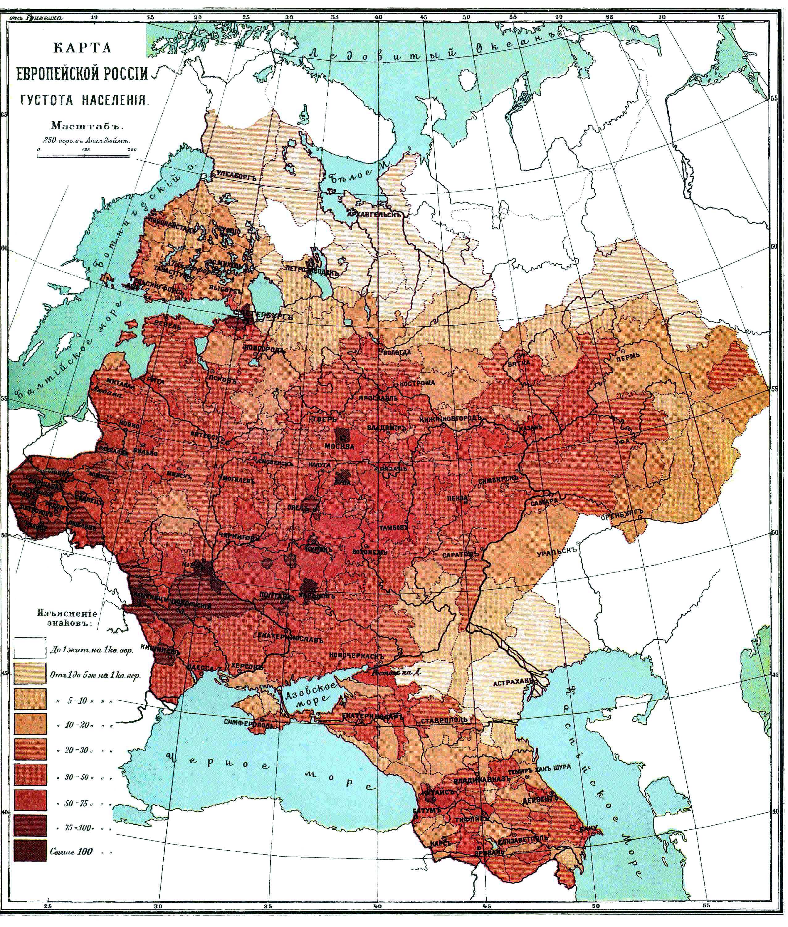러시아 제국의 인구 밀도 (1893년)