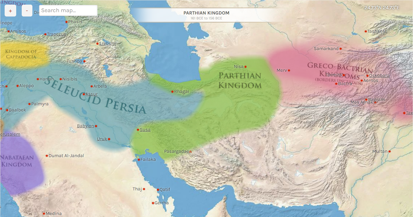 BC 161년 파르티아 군주 미트리다테스 1세의 확장