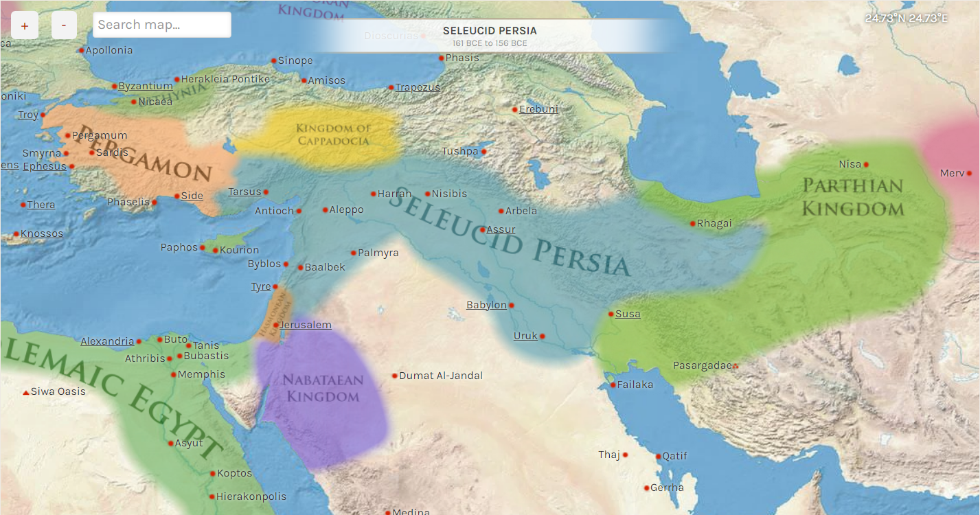 파르티아의 침공과 유다 반란으로 축소된 BC 161년 데메트리오스 1세 시대의 셀레우코스 제국