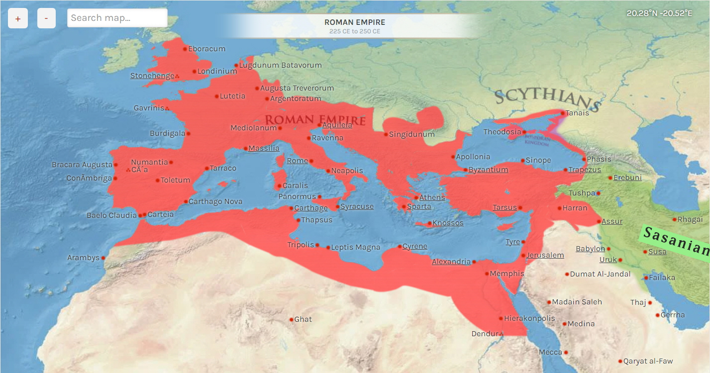 BC 225년 세베루스 알렉산데르 시대의 로마 제국