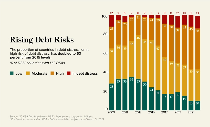 부채 위기의 위험이 높은 DSSI와 LIC(저수준 분쟁) 국가에는 잠비아, 에티오피아 및 타지키스탄 등이 포함된다.