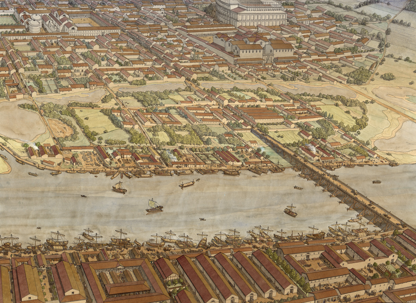 도시의 개발은 아우구스투스 시대에 시작되었고 1세기 초에 정교한 Pilier des Nautes(뱃사공의 기둥)가 지역 하천 상인과 선원(nautes)의 기업에 의해 세워졌으며 티베리우스와 여러 신에게 헌정되었고 강에 중요한 항구가 있음을 보여준다.