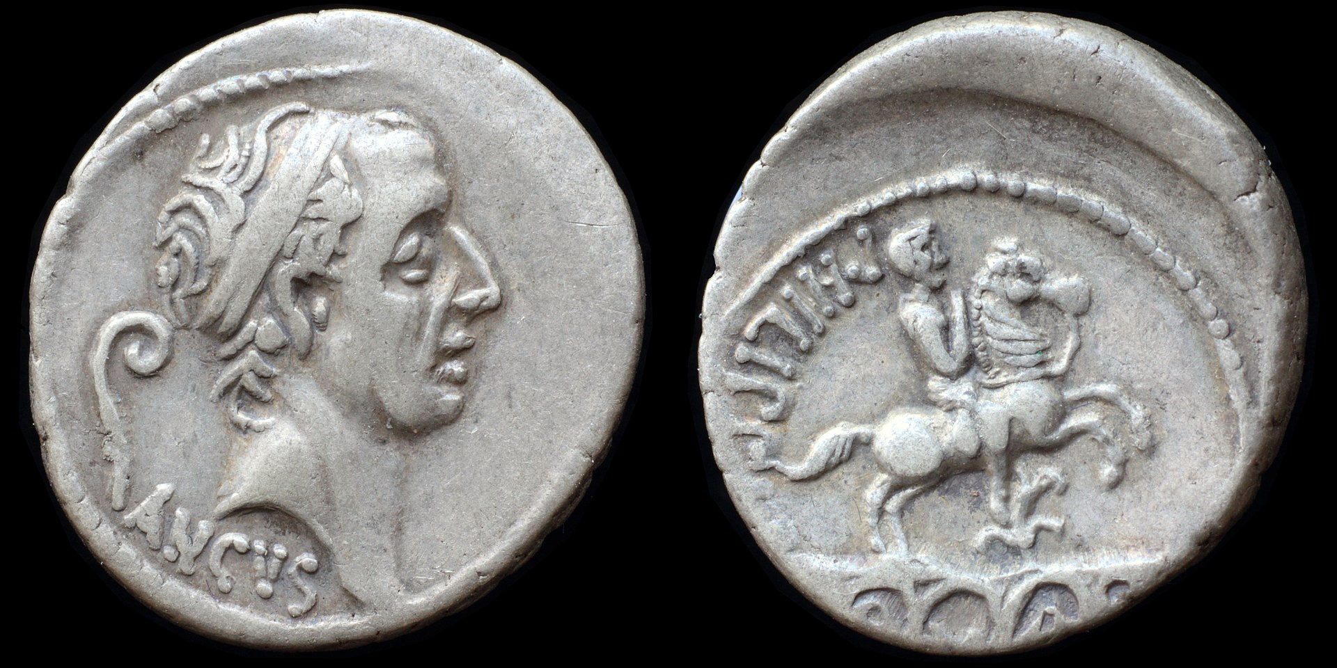 전면 : ANCVS - 안쿠스 마르키우스의 두상, 리투우스(나팔)가 뒤에 있다