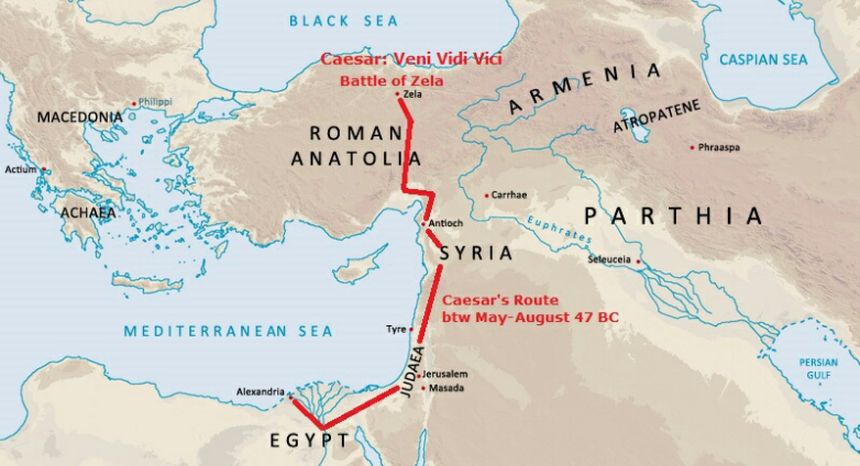 BC 47년 젤라 전투 - 카이사르가 폰토스의 미트리다테스 6세의 아들인 파르나케스 2세를 무찌르다