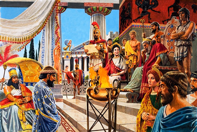 그리스-페르시아 전쟁은 페르시아 제국과 일부 독립적인 그리스 도시국가들 사이에 벌어진 두 번의 전쟁이다. 페르시아는 키루스 대왕이 세운 강력한 제국이었다. 키루스는 지역을 차례로 정복했지만, 정복당한 사람들이 대왕에게 매년 조공과 병역을 제공하는 한 그들이 원하는 대로 예배할 수 있도록 허용했다.