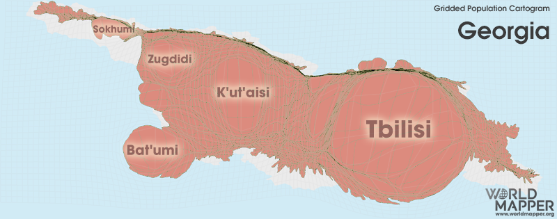조지아의 인구 분포는 수도 트빌리시를 선호하는 가운데 이웃 국가보다 약간 더 균등하다.