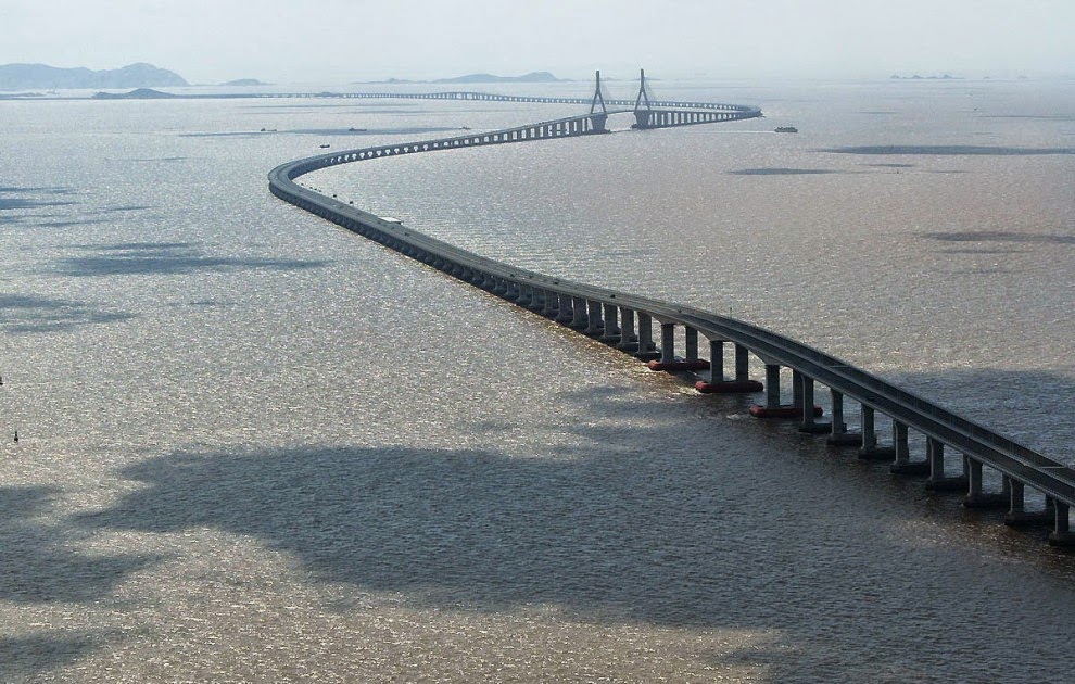 이 26.4마일(42.5km)의 다리는 45만 톤의 강철과 300만 입방야드의 콘크리트를 사용하여 2011년 중국에서 완공했다.