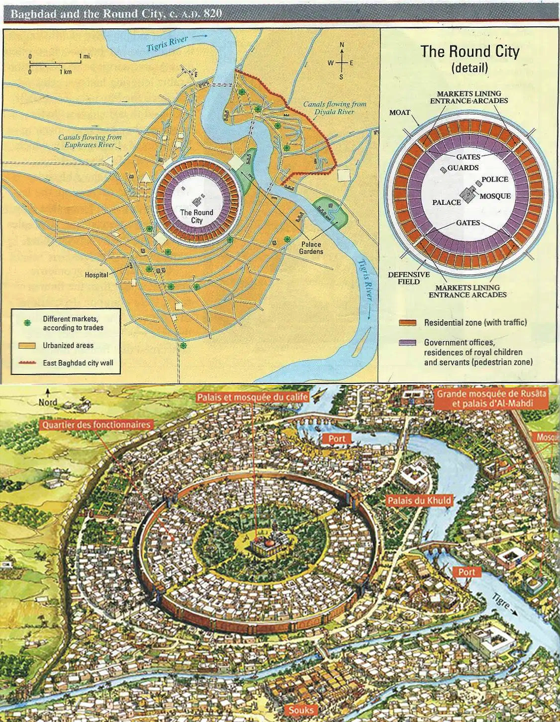 9세기에 바그다드는 100만 명의 거주민을 가진 최초의 도시가 되었다(역사가들은 로마와 중국의 장안 또한 그보다 더 일찍 달성했을 것으로 추정하지만).