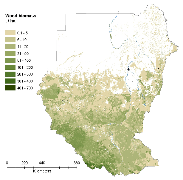 수단의 남쪽으로 갈수록, 주변 환경은 더 푸르러진다. 아래 지도(비교적 새로운 국가인 남수단도 포함)는 이 지역의 북쪽에서 남쪽으로 초목의 극심한 차이를 보여준다.