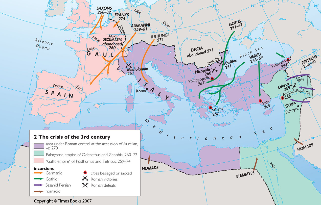 사망 : 260년 콜로니아 아그리피나, 갈리아 황제 포스투무스의 병사에게 살해됨