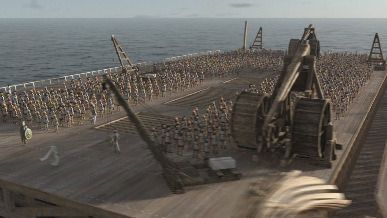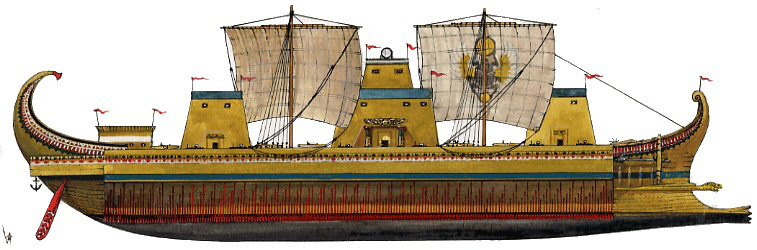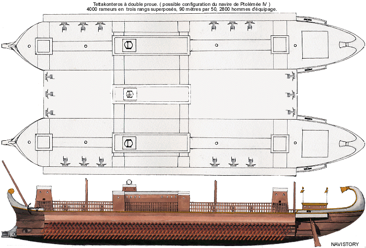 알렉산더 대왕의 후계자들과 그 후손들은 많은 배로 구성된 함대를 만들고 테사라콘테레스(40단)와 같은 거대한 배를 건조하였다. 배들은 현대 전함과 항공모함을 연상시키는 진정으로 떠다니는 요새였다.