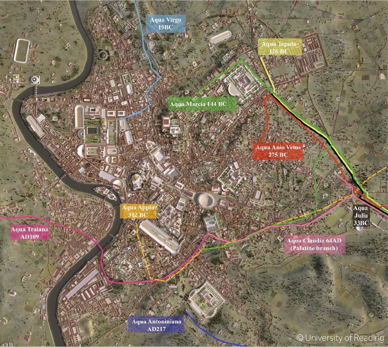 수원부터 도시에 이르기까지 로마인들은 도시에 물을 공급하기 위해 수많은 자연적 장애물을 극복해야 했다.