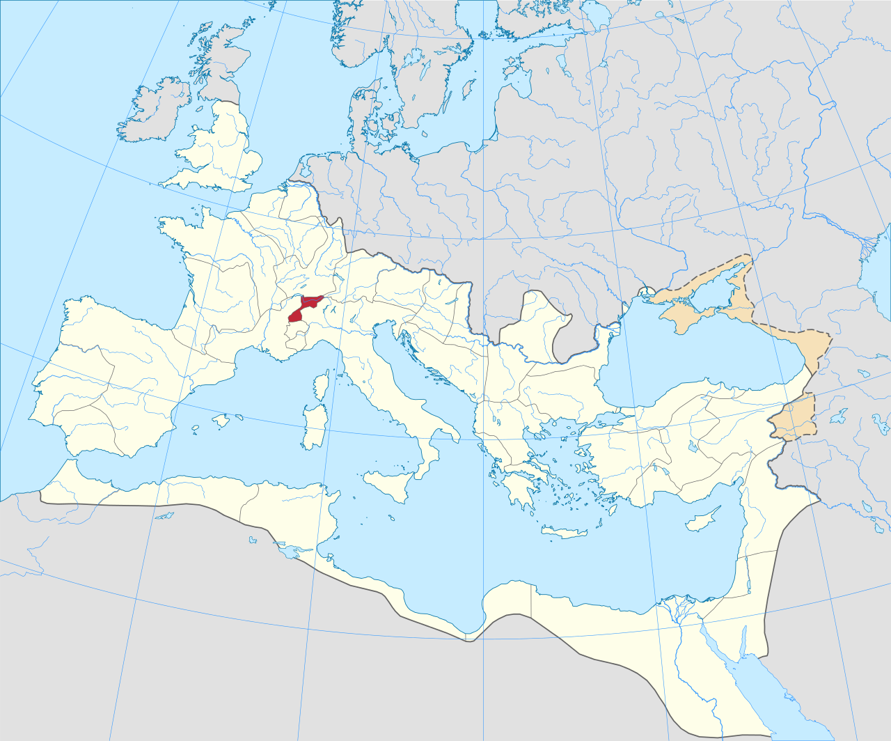 · AD 83/84 - 게르마니아 수페리오르 : 독일 남부. 도미티아누스가 Agri Decumates를 독일 남부까지 밀어붙인 관계로 속주를 생성할 필요가 생김. 라인 강 서쪽 기슭까지 영토였을 때 갈리아 벨기카 속주의 군사 지구. 황제 속주.